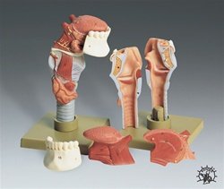Medially sectioned to show details of the larynx, including cartilages, ligaments, muscles, relief of mucous membrane and thyroid glandThe front of the lower jaw is detachable and separates into 2 partsThe sublingual gland and the submandibular gland and the submandibular gland are shownLife-size, on included baseDissects into 5 partsMade of SOMSO-plastSize: 5" x 6" x 8"Somso ModelleThis Anatomical Chart Company model is latex free, as it is made of silicone based rubber.Please note: Anatomical Charts Models are manufactured by various companies. Items on your order may ship from separate locations. Each manufacturer has their own order processing time. It may take 24-72 hours for your order to be processed and packed for shipment..../ Human Larynx With Tongue Model / MEDICAL LAB